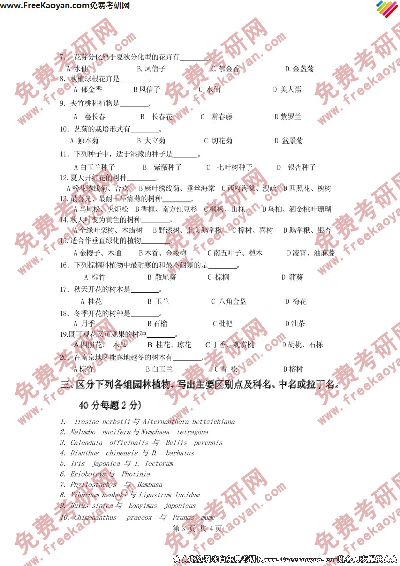 专业课考研经验 本站小编 FreeKaoyan 2018-01-23南京林业大学2004年考研真题-园林设计初步