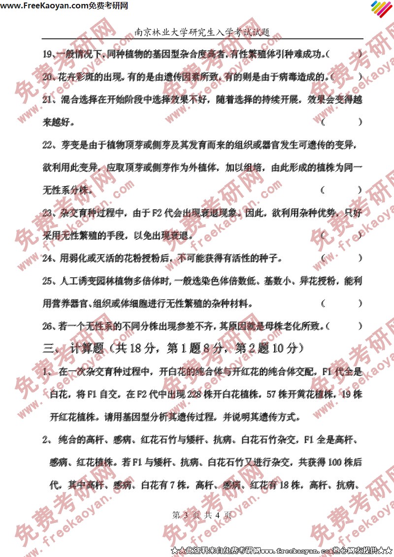 南京林业大学2004年考研真题-园林植物遗传育种(3)