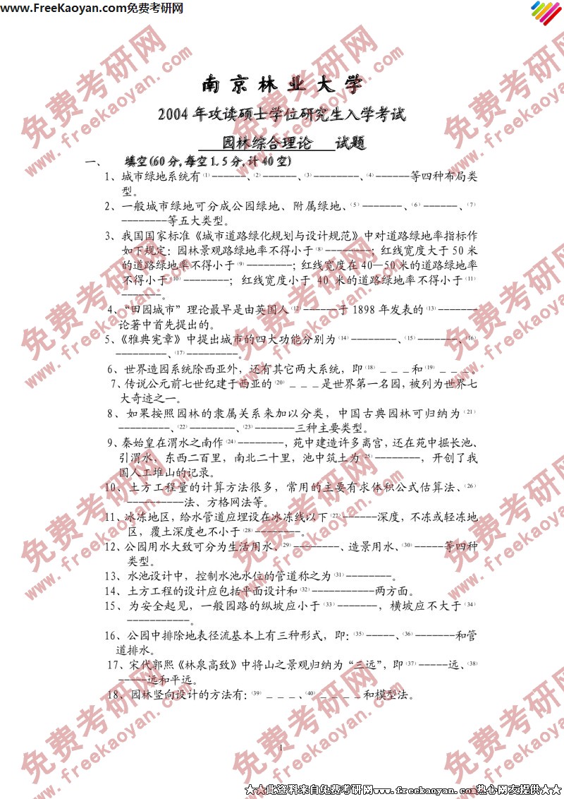 专业课考研经验 本站小编 FreeKaoyan 2018-01-23南京林业大学2004年考研真题-园林设计初步