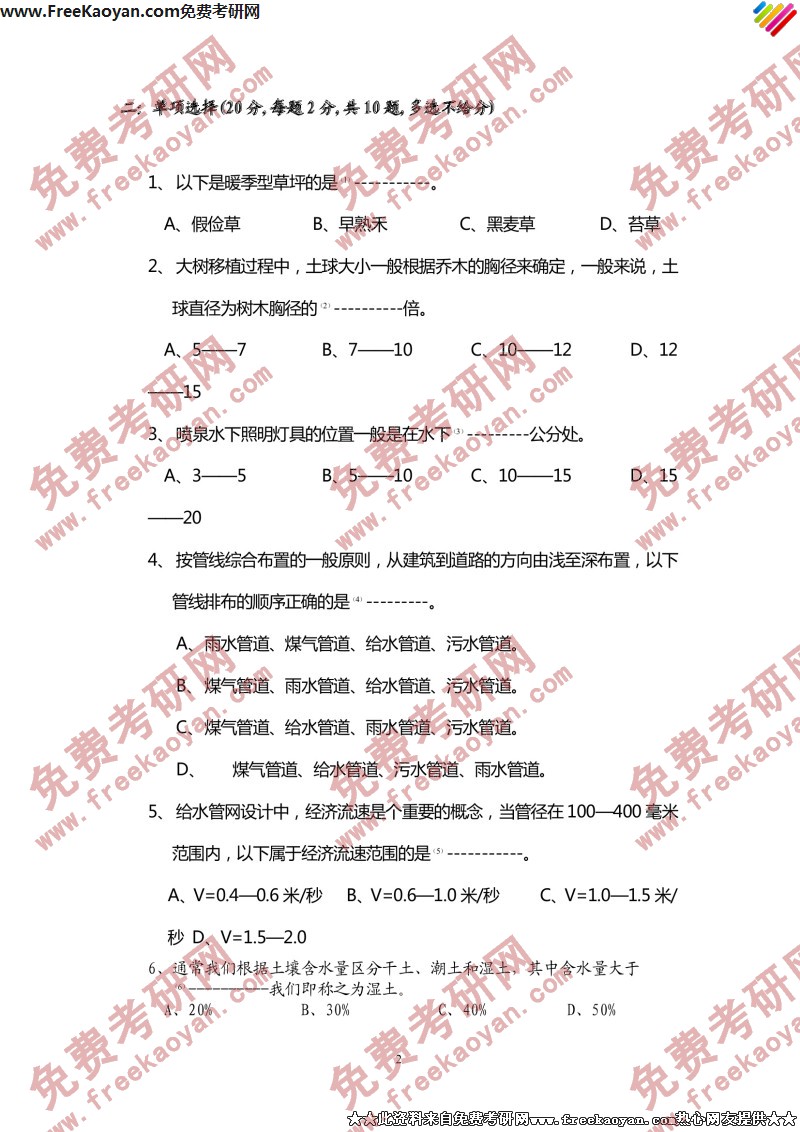 专业课考研经验 本站小编 FreeKaoyan 2018-01-23南京林业大学2004年考研真题-园林设计初步