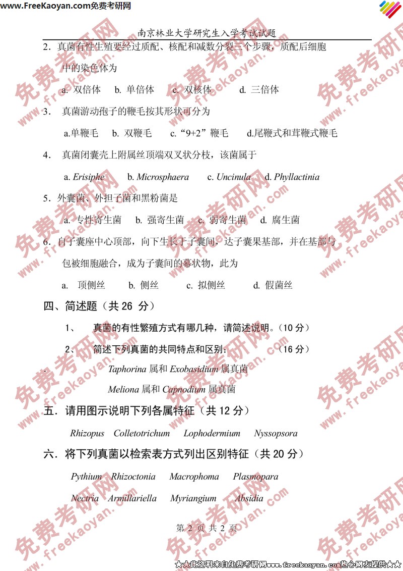 相关话题/考研真题 南京林业大学 分类学 真菌