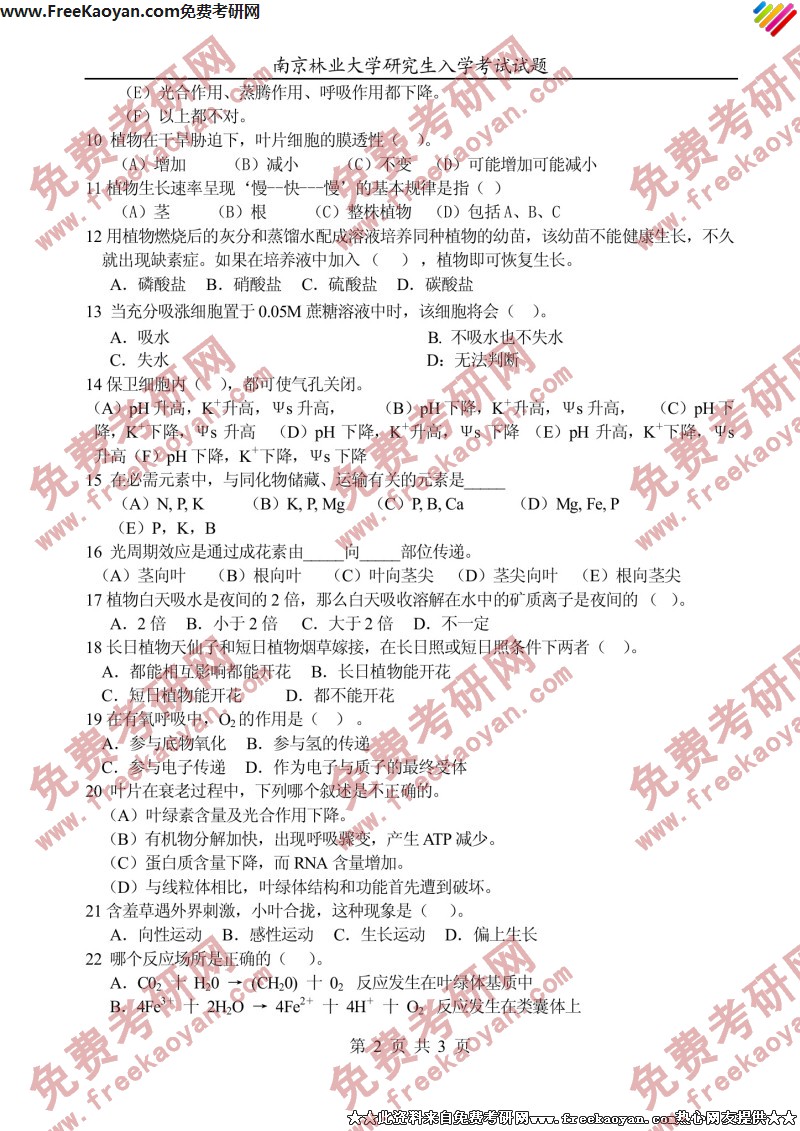 专业课考研经验 本站小编 FreeKaoyan 2018-01-23南京林业大学2004年考研真题-细胞生物学