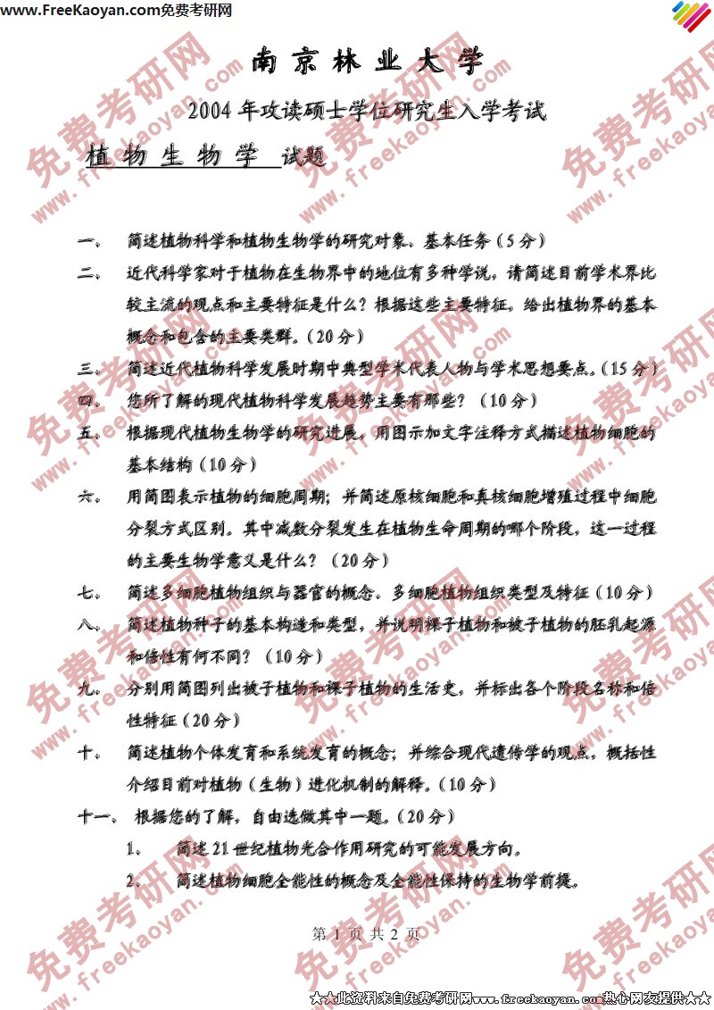 专业课考研经验 本站小编 FreeKaoyan 2018-01-23南京林业大学2004年考研真题-园林植物
