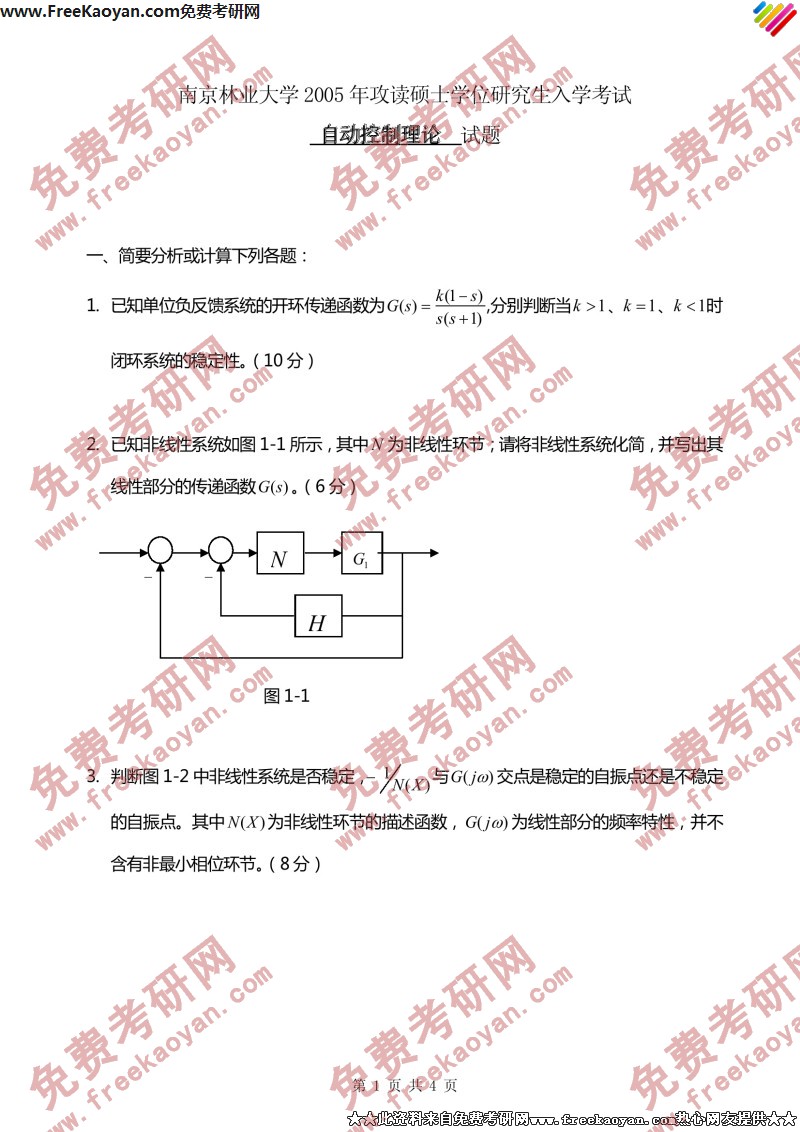 专业课考研经验 本站小编 FreeKaoyan 2018-01-23南京林业大学2004年考研真题-自动控制理论