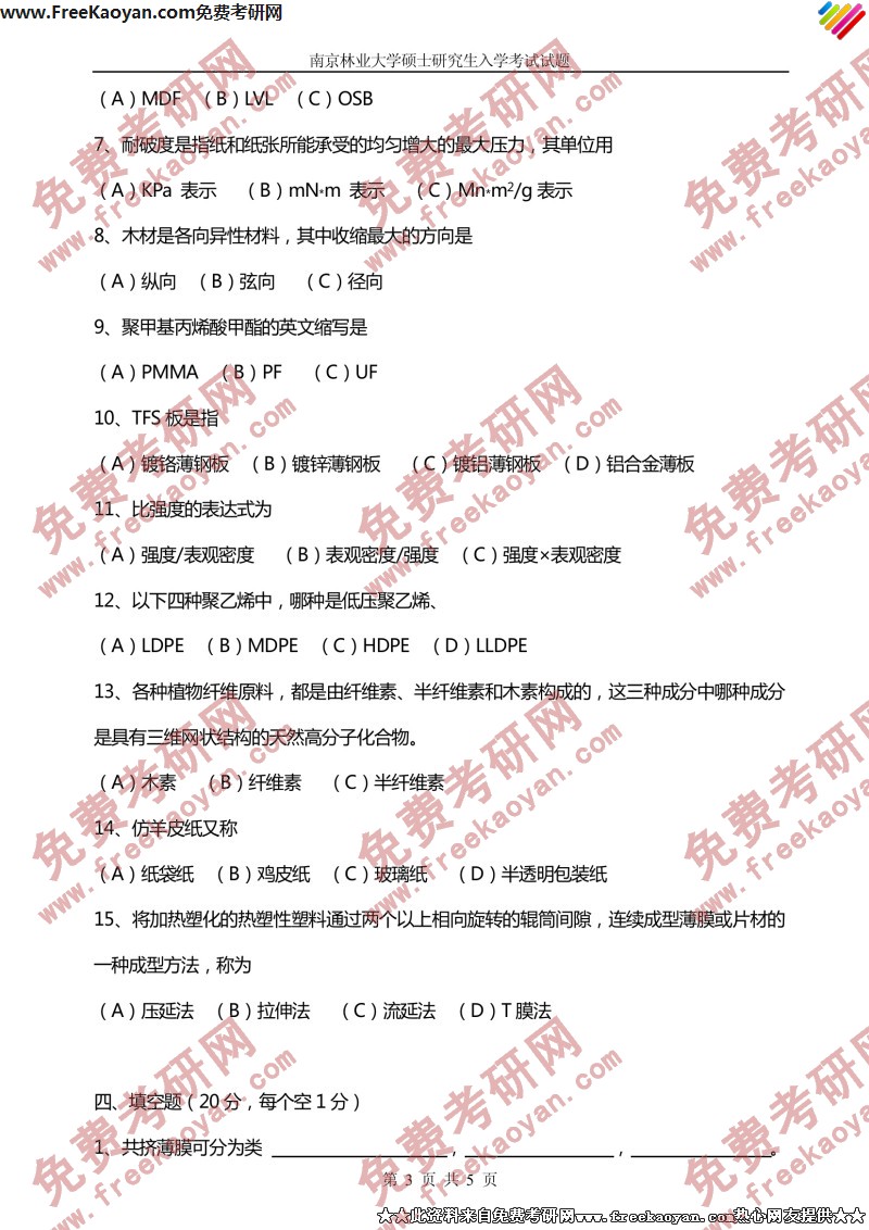 相关话题/考研真题 南京林业大学 材料学 包装