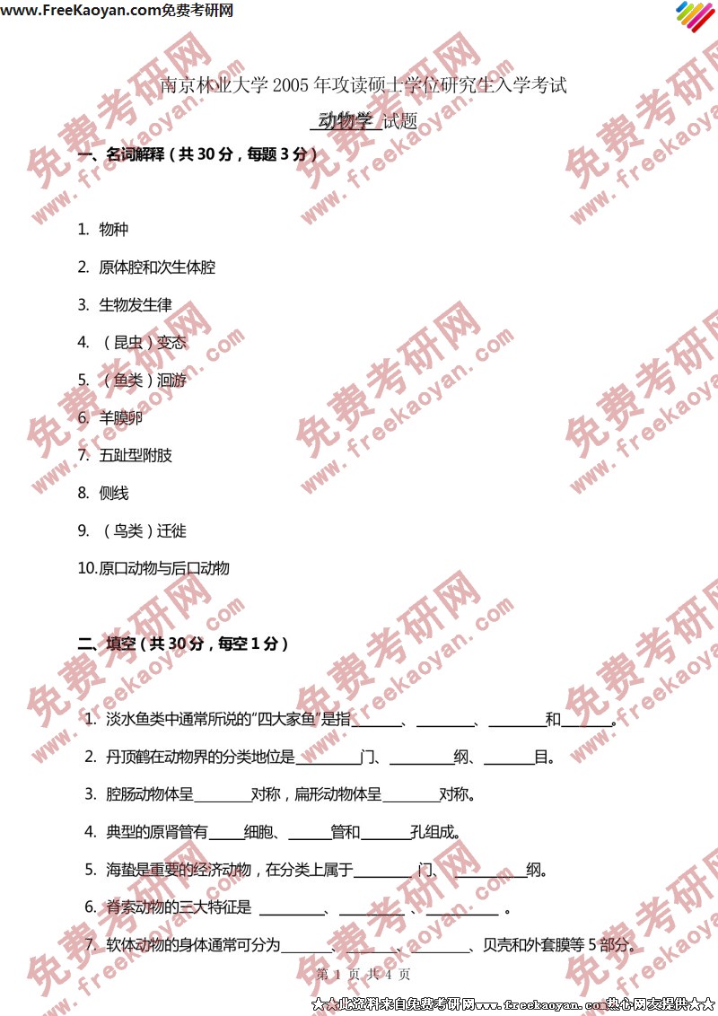 相关话题/南京林业大学 考研真题 动物学