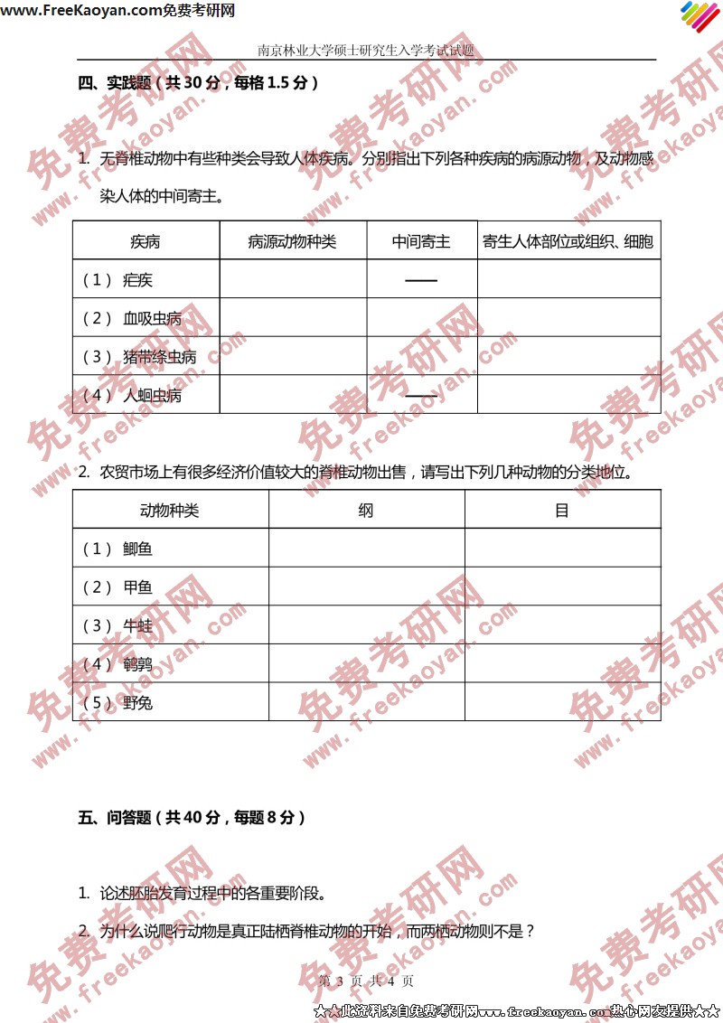 相关话题/南京林业大学 考研真题 动物学