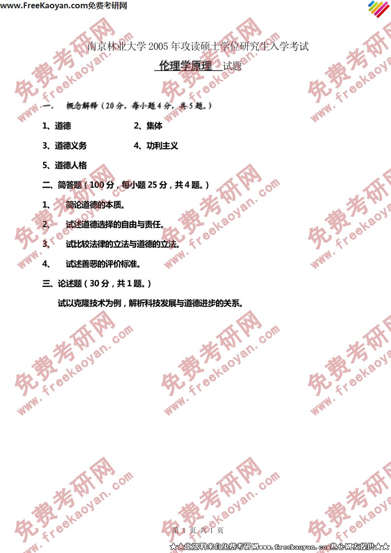 相关话题/考研真题 南京林业大学 伦理学 原理