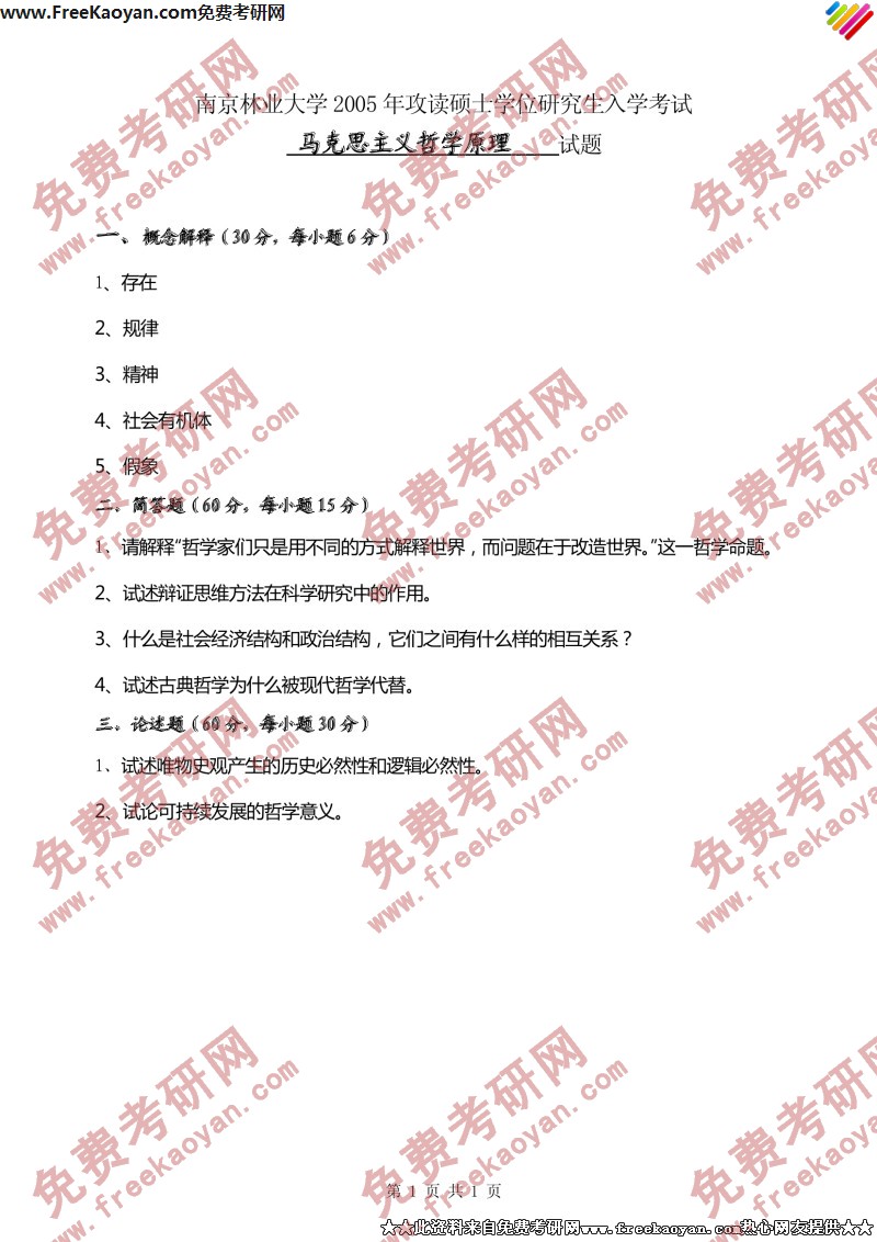 相关话题/考研真题 马克思主义哲学 南京林业大学 原理