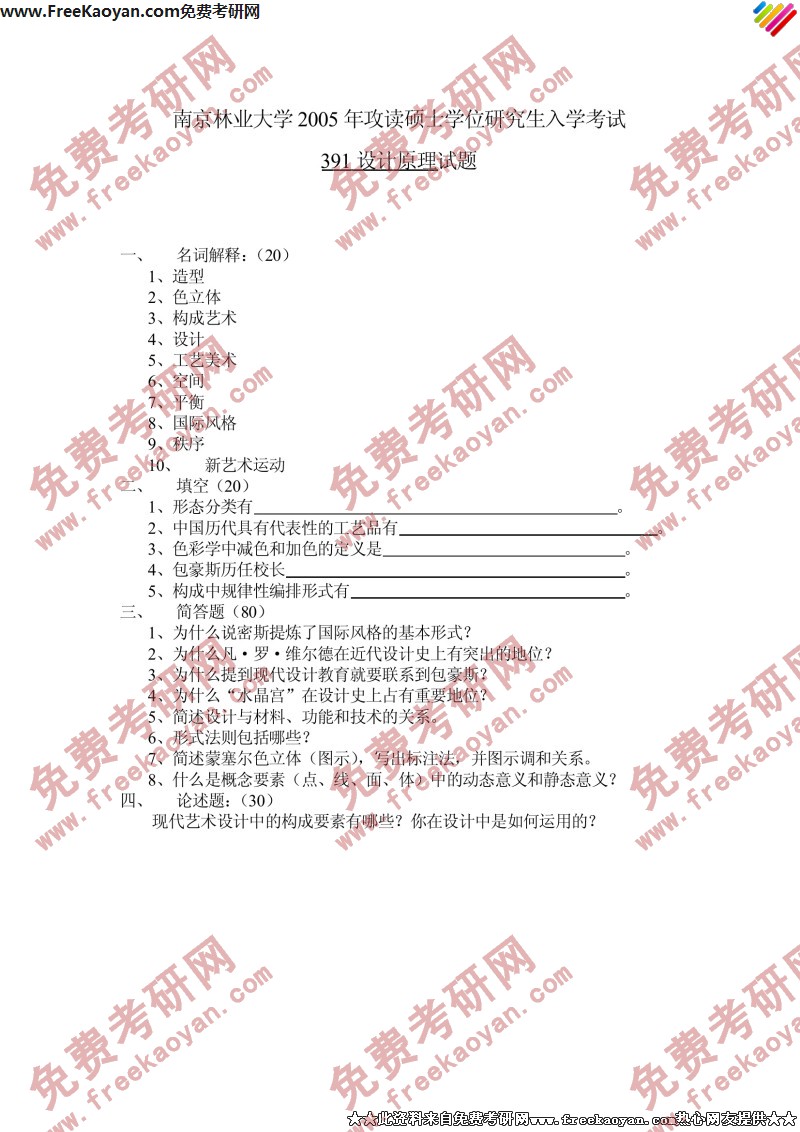专业课考研经验 本站小编 FreeKaoyan 2018-01-23南京林业大学2005年考研真题-包装材料学