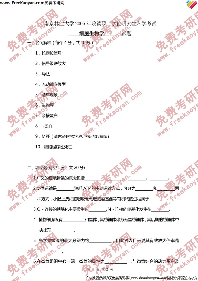 专业课考研经验 本站小编 FreeKaoyan 2018-01-23南京林业大学2005年考研真题-动物学