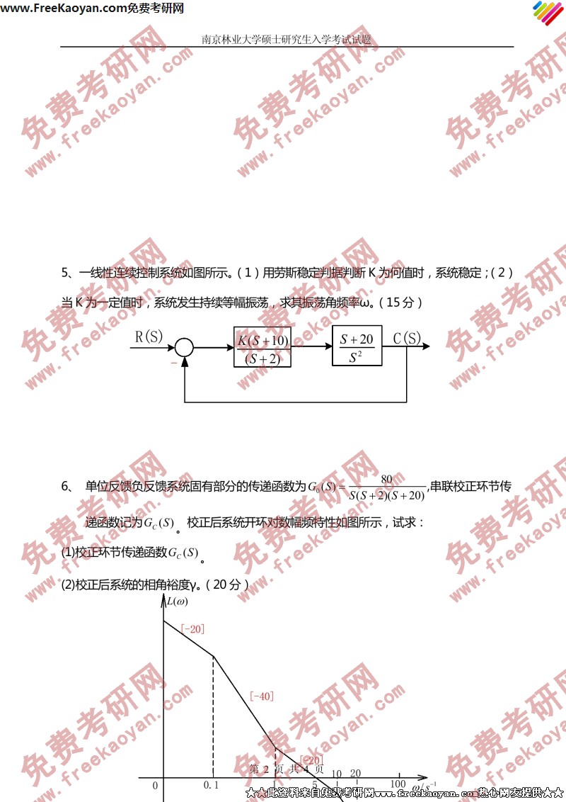 专业课考研经验 本站小编 FreeKaoyan 2018-01-23南京林业大学2005年考研真题-自动控制原理