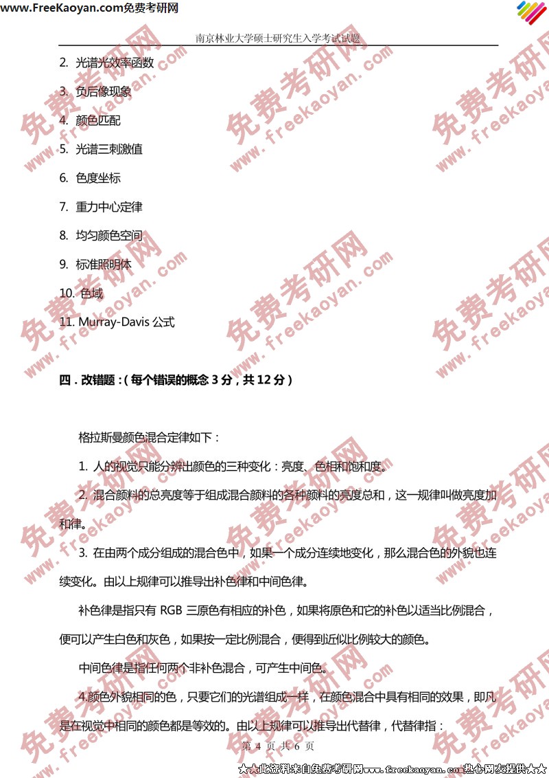 专业课考研经验 本站小编 FreeKaoyan 2018-01-23南京林业大学2005年考研真题-室内设计基础