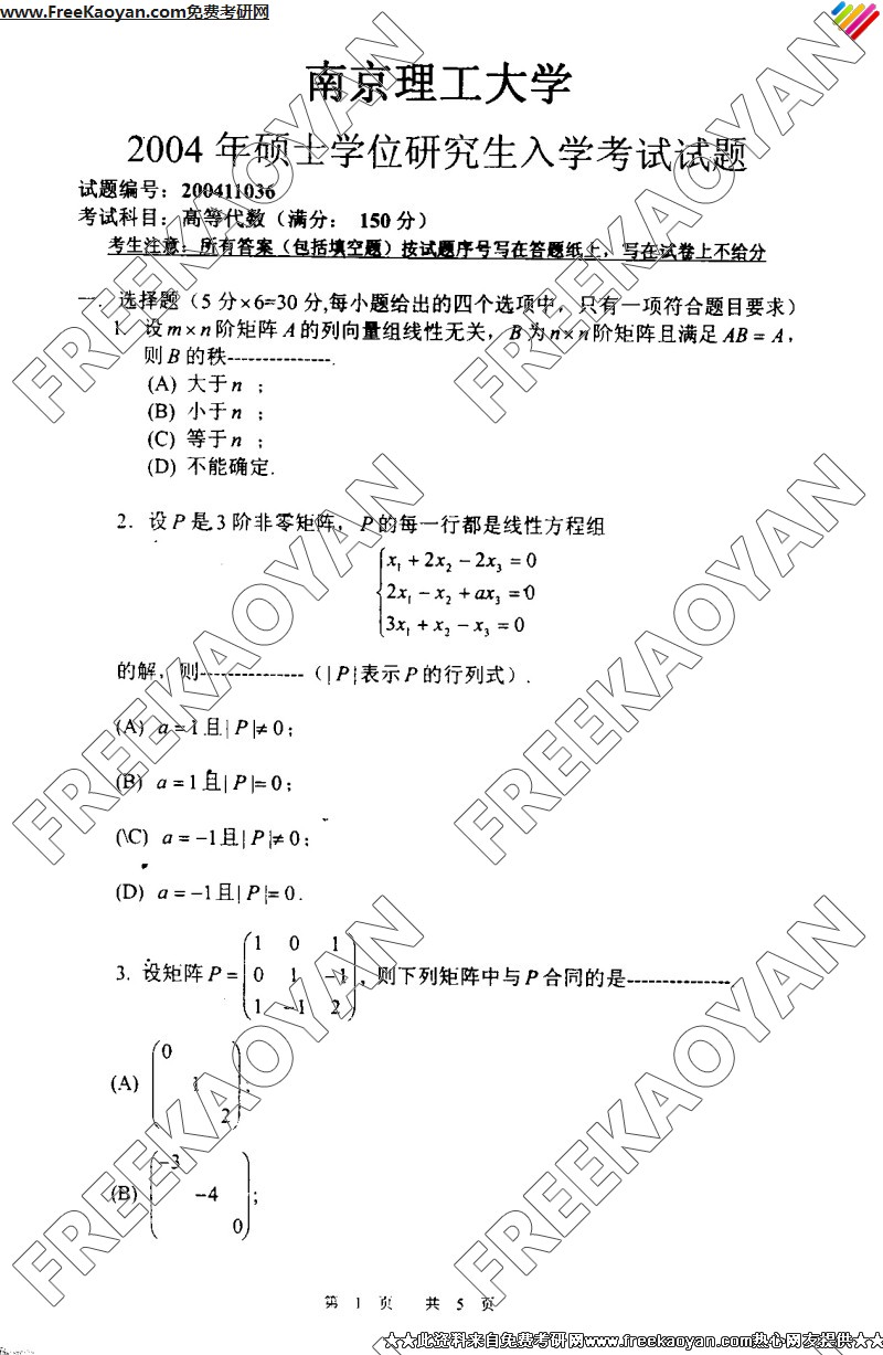 专业课考研经验 本站小编 FreeKaoyan 2018-01-23南京理工大学2004年考研真题-电路