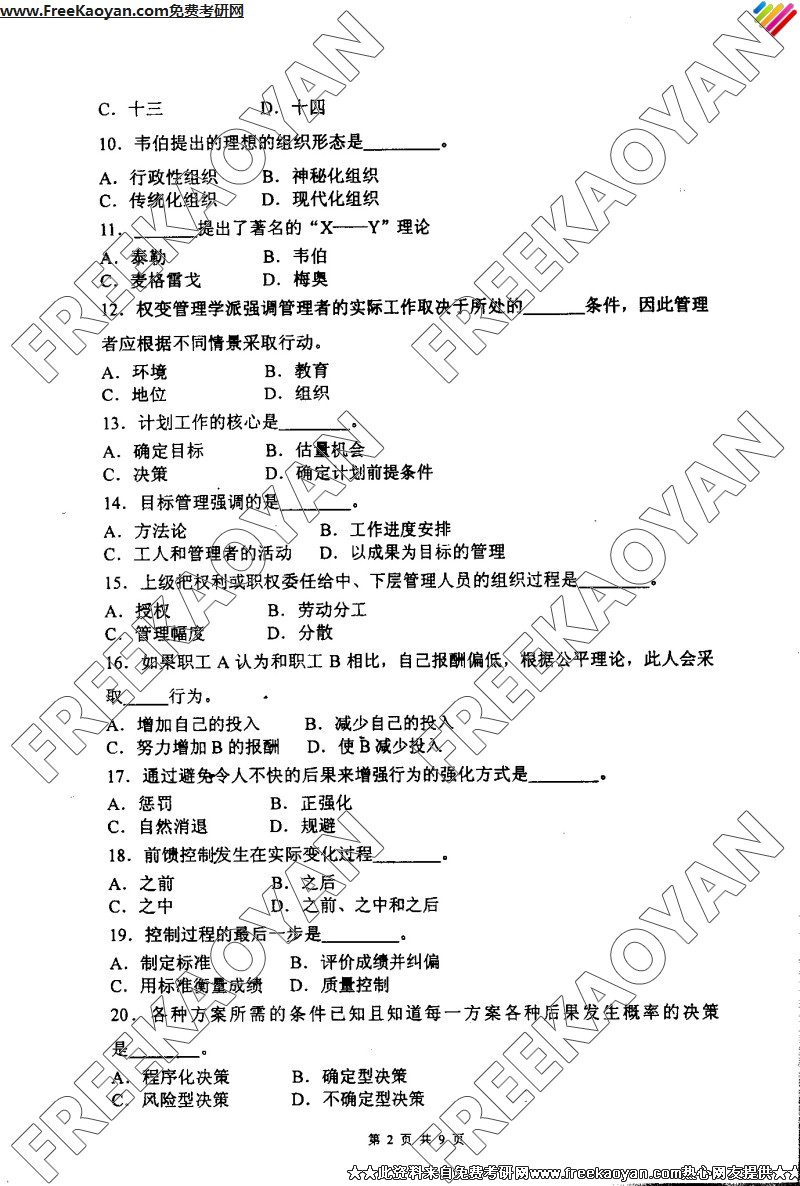 专业课考研经验 本站小编 FreeKaoyan 2018-01-23南京理工大学2004年考研真题-管理学