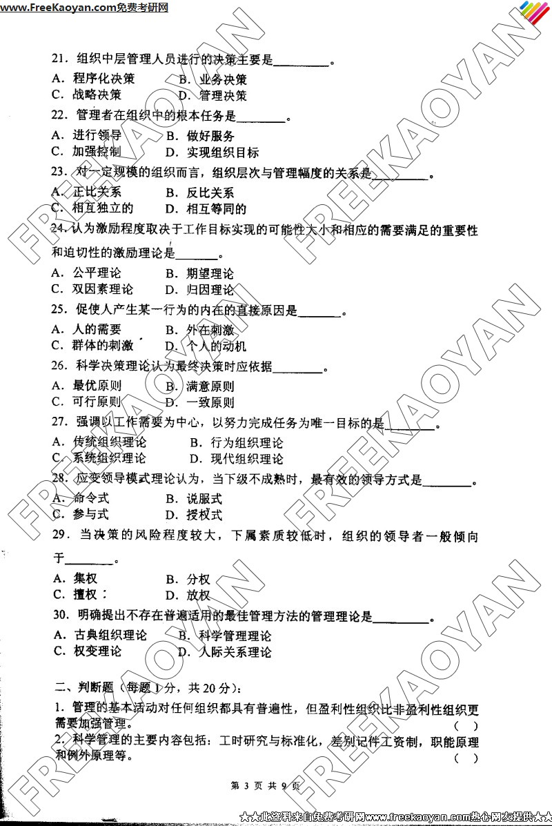 专业课考研经验 本站小编 FreeKaoyan 2018-01-23南京理工大学2004年考研真题-管理学