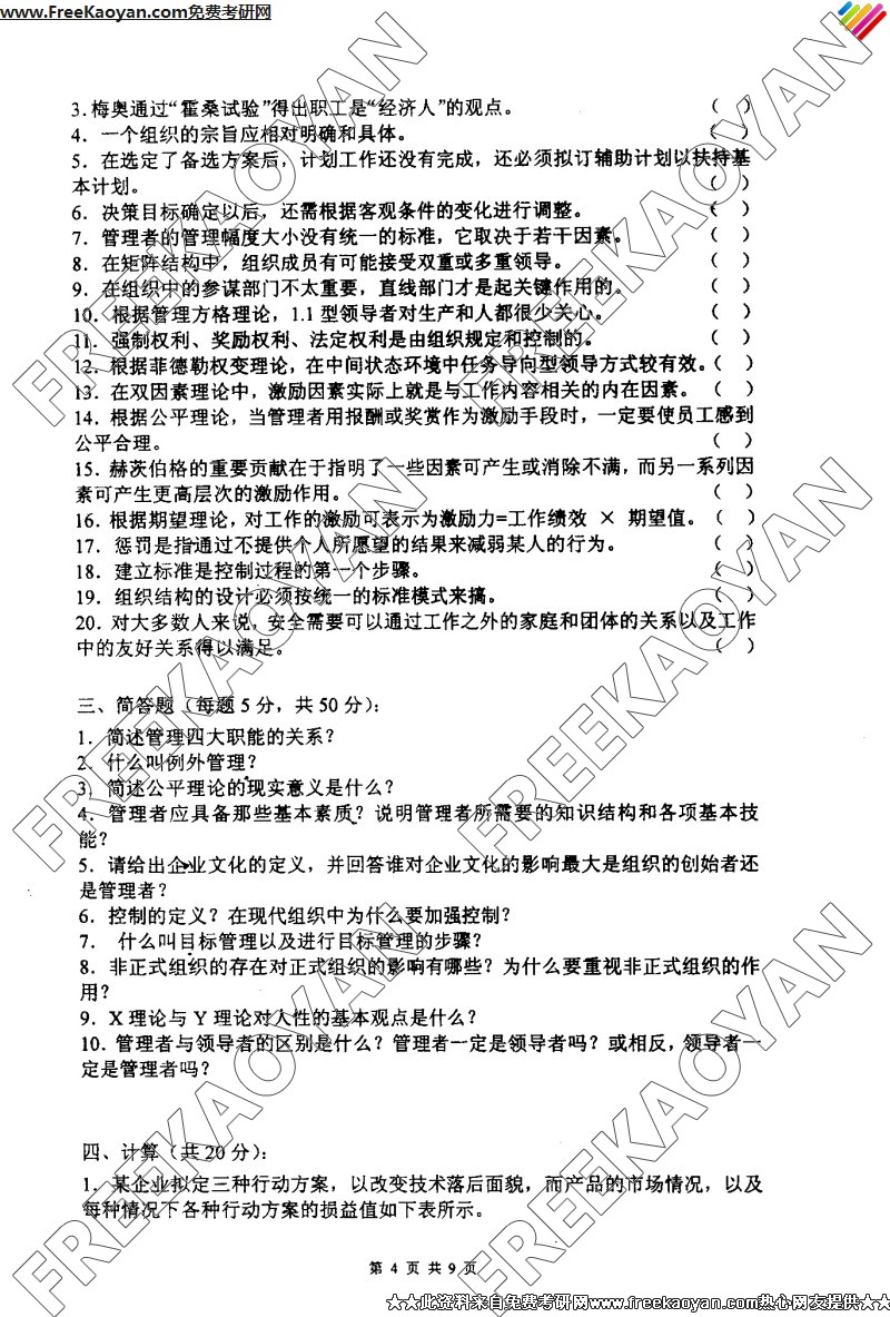 专业课考研经验 本站小编 FreeKaoyan 2018-01-23南京理工大学2004年考研真题-管理学