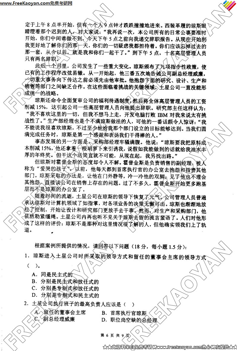 专业课考研经验 本站小编 FreeKaoyan 2018-01-23南京理工大学2004年考研真题-管理学