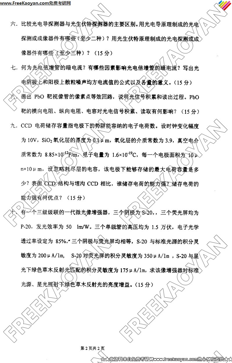 专业课考研经验 本站小编 FreeKaoyan 2018-01-23南京理工大学2004年考研真题-工程光学
