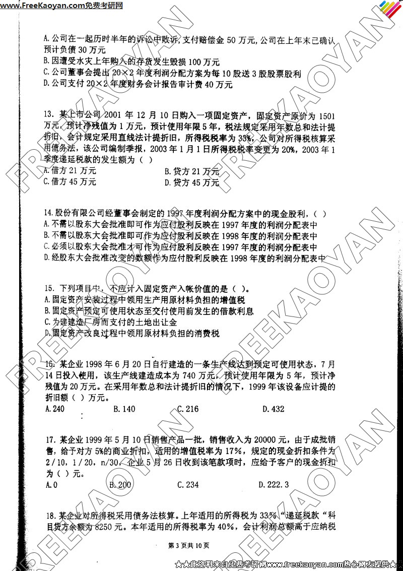 南京理工大学2004年考研真题-会计学(3)
