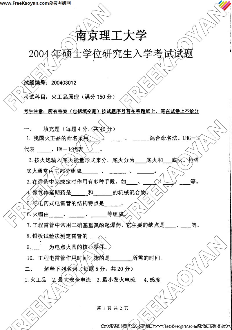 专业课考研经验 本站小编 FreeKaoyan 2018-01-23南京理工大学2004年考研真题-德语