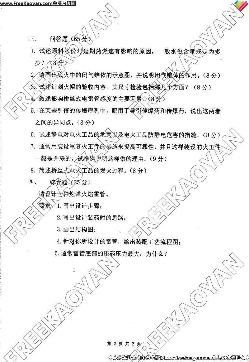 南京理工大学2004年考研真题-火工品原理(2)