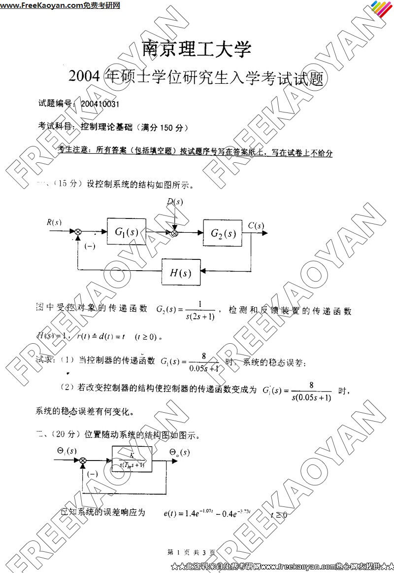 专业课考研经验 本站小编 FreeKaoyan 2018-01-23南京理工大学2004年考研真题-计算机专业基础