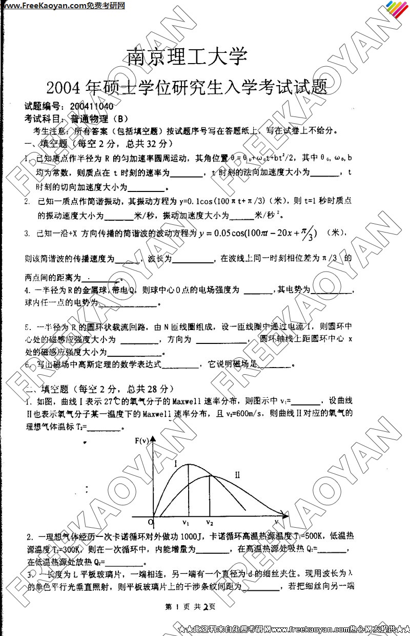 专业课考研经验 本站小编 FreeKaoyan 2018-01-23南京理工大学2004年考研真题-基础英语