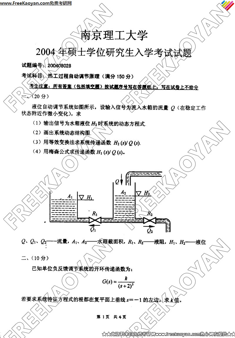 南京理工大学2004年考研真题-热工过程自动调节原理