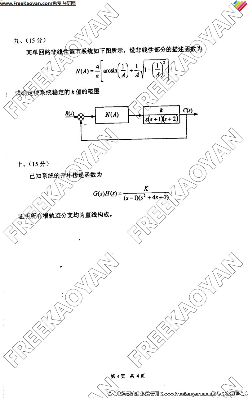 专业课考研经验 本站小编 FreeKaoyan 2018-01-23南京理工大学2004年考研真题-控制理论基础