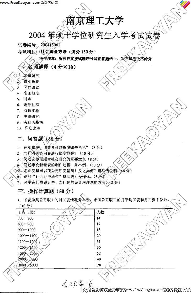 相关话题/考研真题 南京理工大学 社会调查 方法