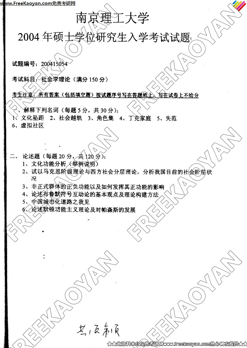 南京理工大学2004年考研真题-社会学理论