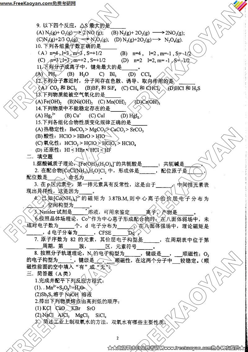 相关话题/南京理工大学 考研真题 无机化学