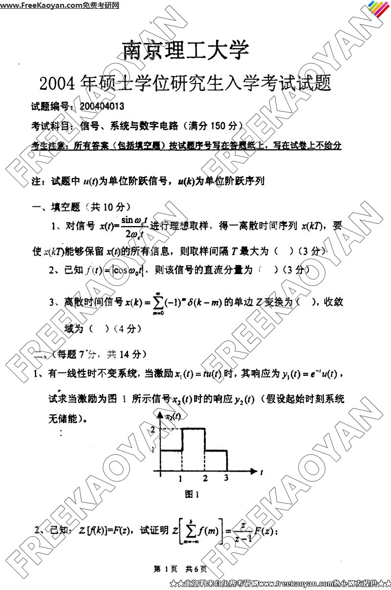 南京理工大学2004年考研真题-信号、系统与数字电路