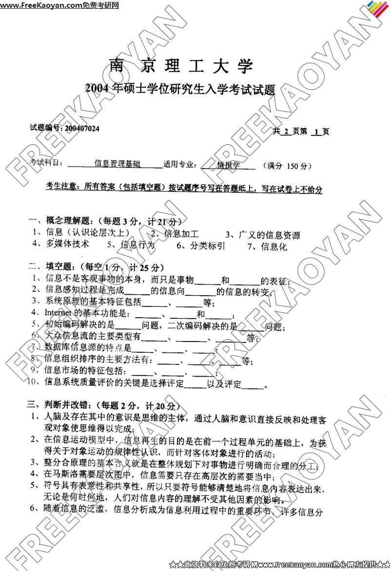 相关话题/考研真题 南京理工大学 基础 信息管理