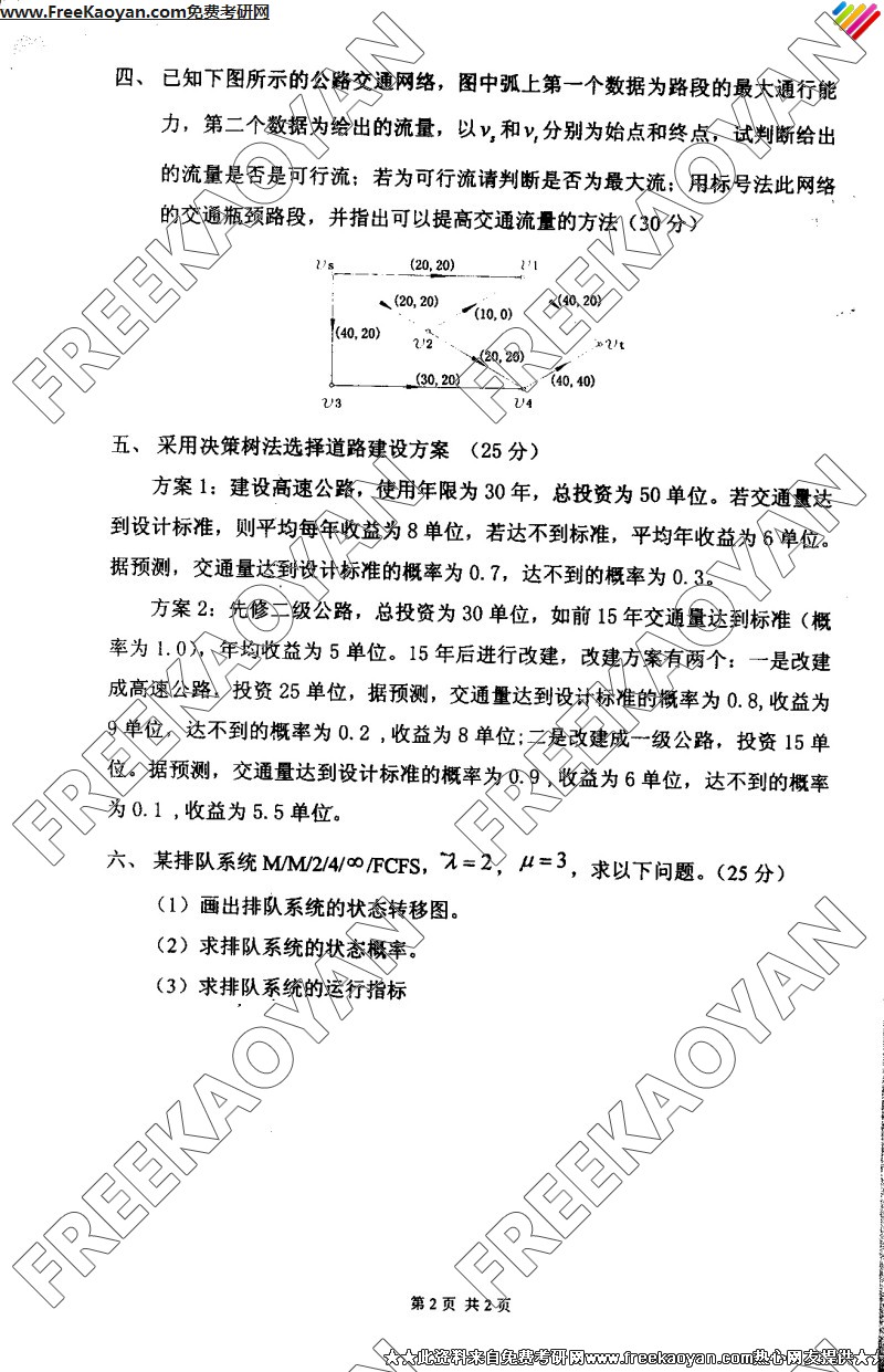 南京理工大学2005年考研真题-道路交通工程系统分析(2)