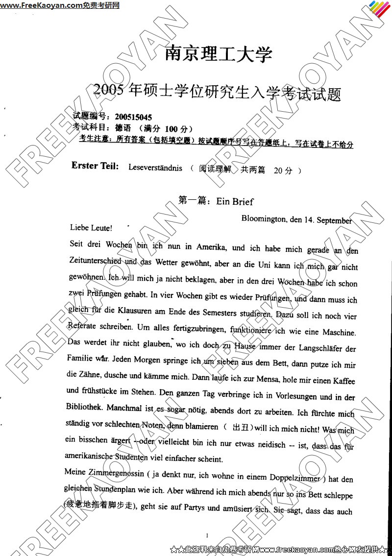 专业课考研经验 本站小编 FreeKaoyan 2018-01-23南京理工大学2004年考研真题-英美文学