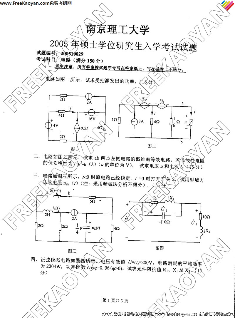 南京理工大学2005年考研真题-电路