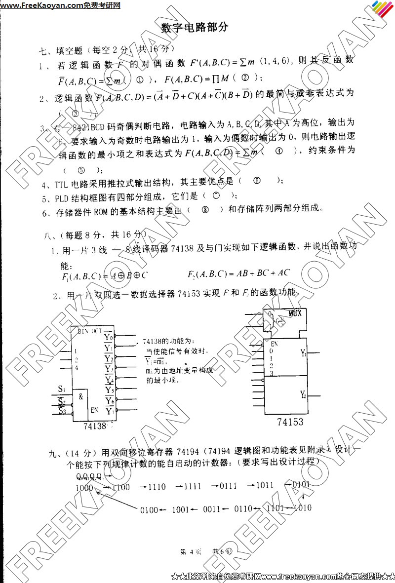 专业课考研经验 本站小编 FreeKaoyan 2018-01-23南京理工大学2004年考研真题-信号、系统与数字电路