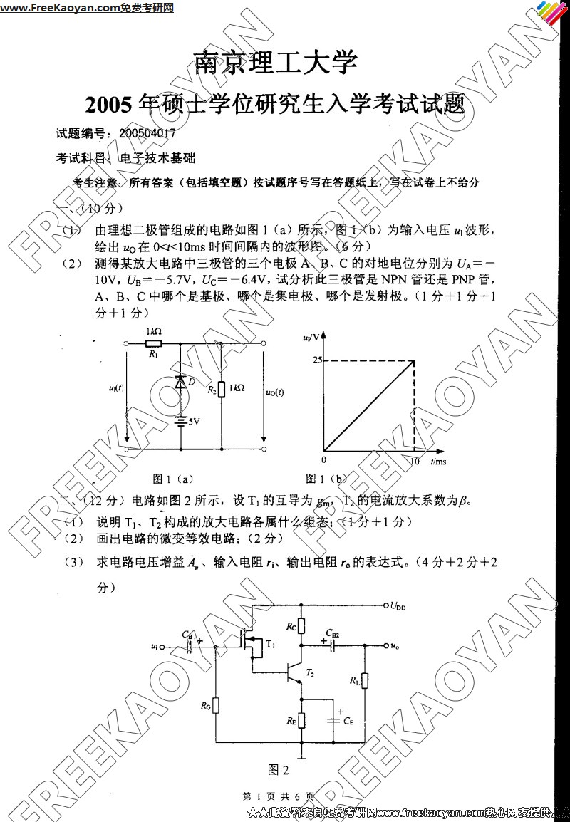 专业课考研经验 本站小编 FreeKaoyan 2018-01-23南京理工大学2005年考研真题-电子技术