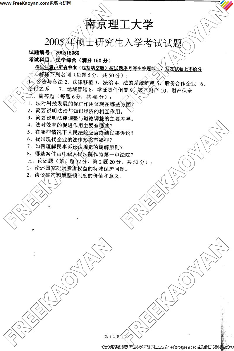 专业课考研经验 本站小编 FreeKaoyan 2018-01-23南京理工大学2005年考研真题-德语