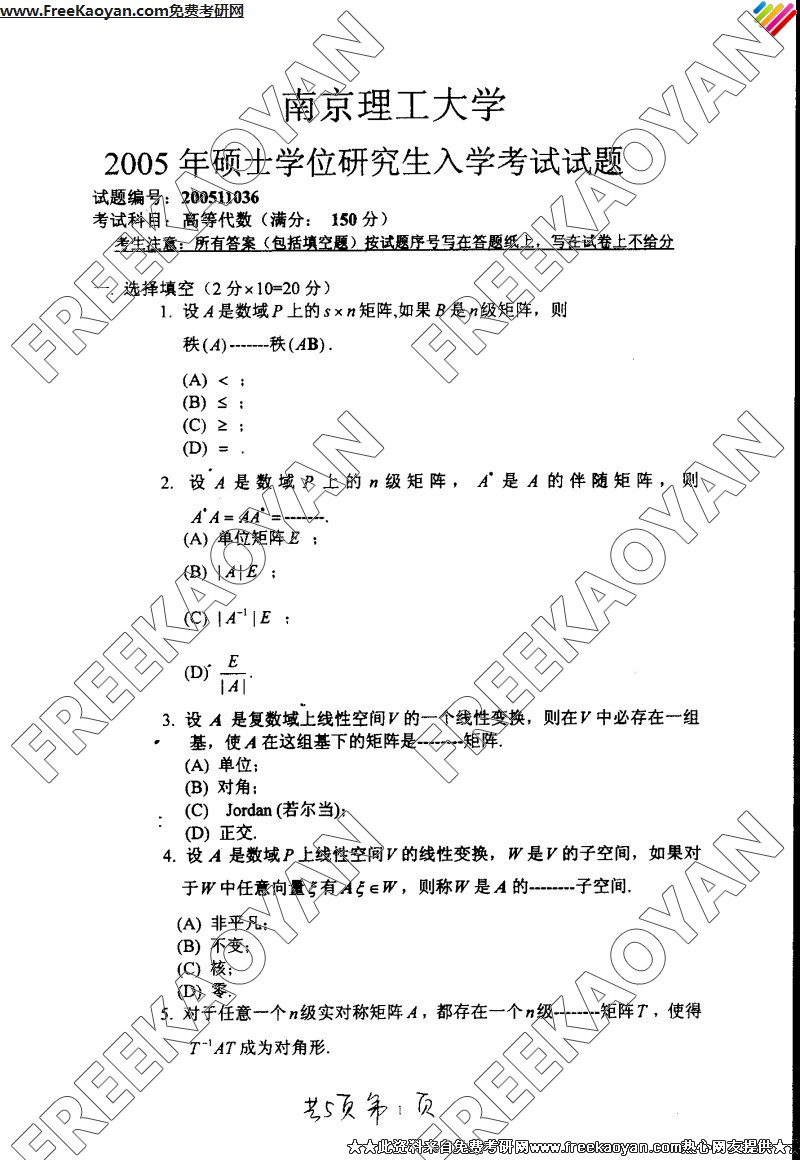 专业课考研经验 本站小编 FreeKaoyan 2018-01-23南京理工大学2005年考研真题-电路