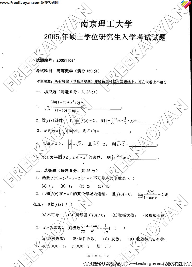 专业课考研经验 本站小编 FreeKaoyan 2018-01-23南京理工大学2005年考研真题-电路