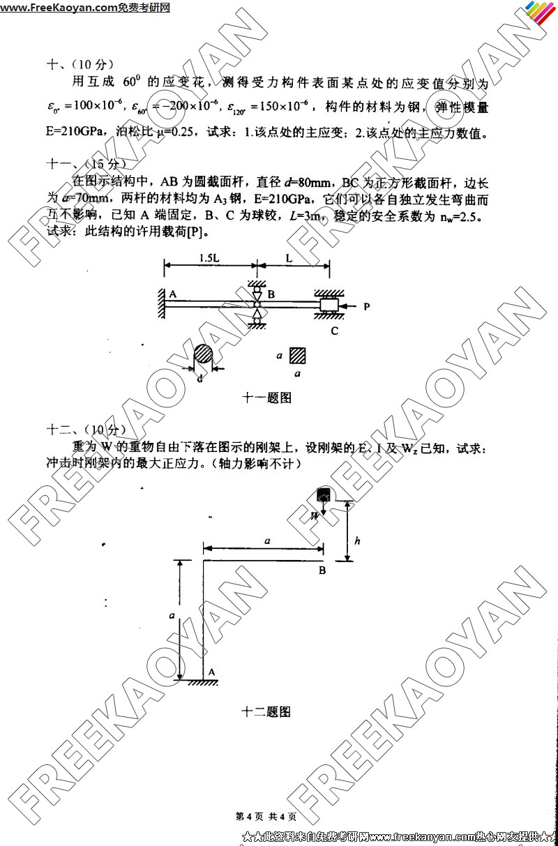 相关话题/南京理工大学 考研真题 工程力学