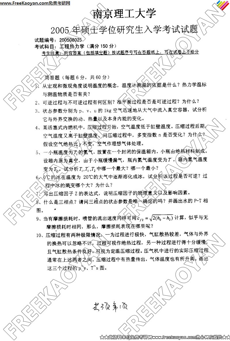专业课考研经验 本站小编 FreeKaoyan 2018-01-23南京理工大学2005年考研真题-高等数学