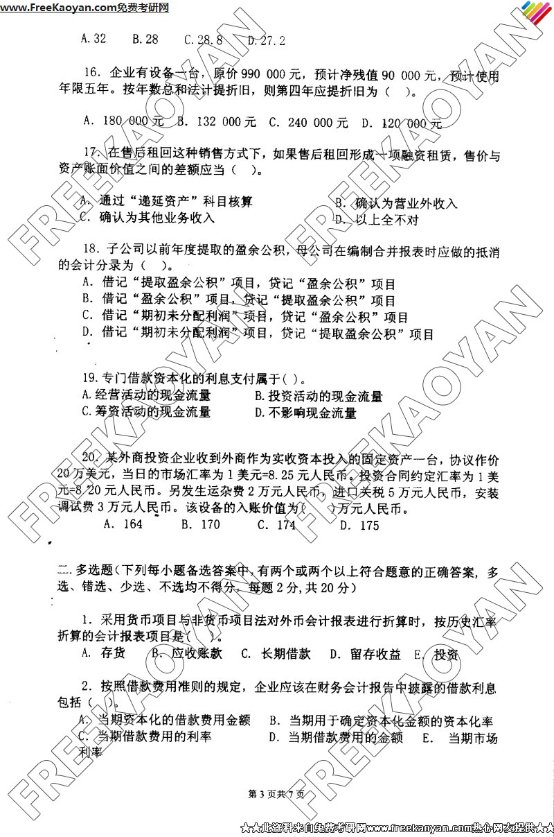 南京理工大学2005年考研真题-会计学(3)