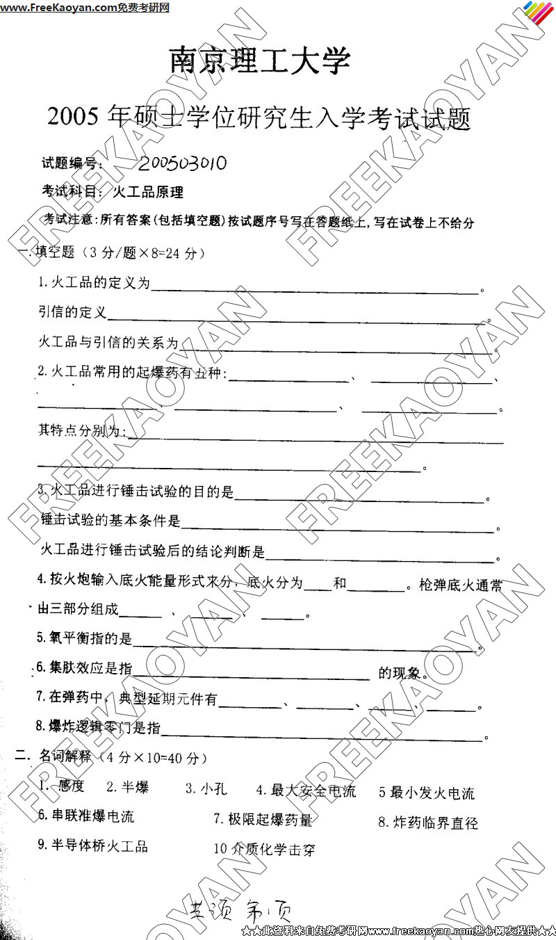 南京理工大学2005年考研真题-火工品原理