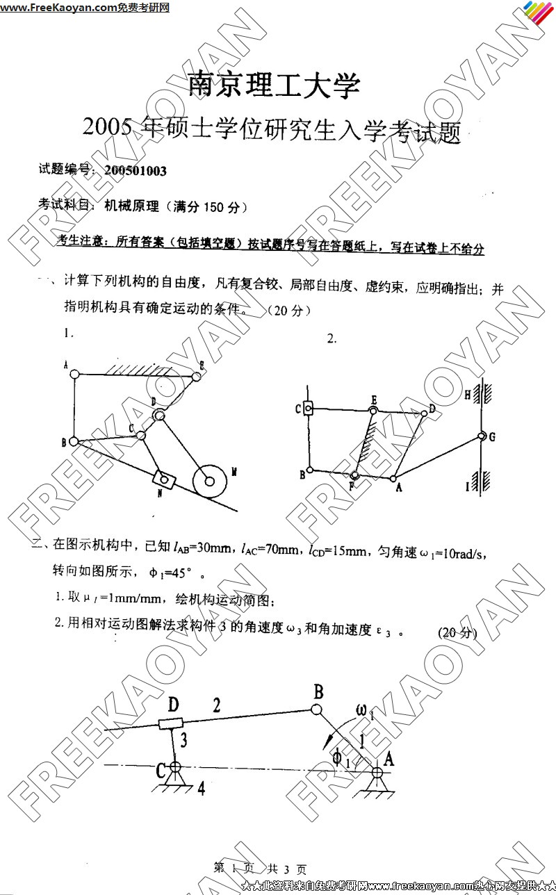 专业课考研经验 本站小编 FreeKaoyan 2018-01-23南京理工大学2005年考研真题-工程力学(B)