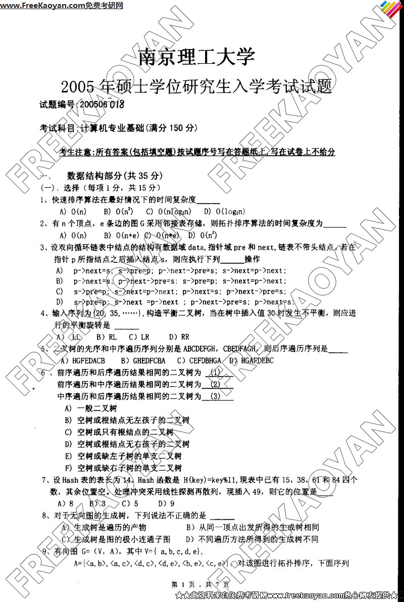 相关话题/考研真题 南京理工大学 专业基础 计算机