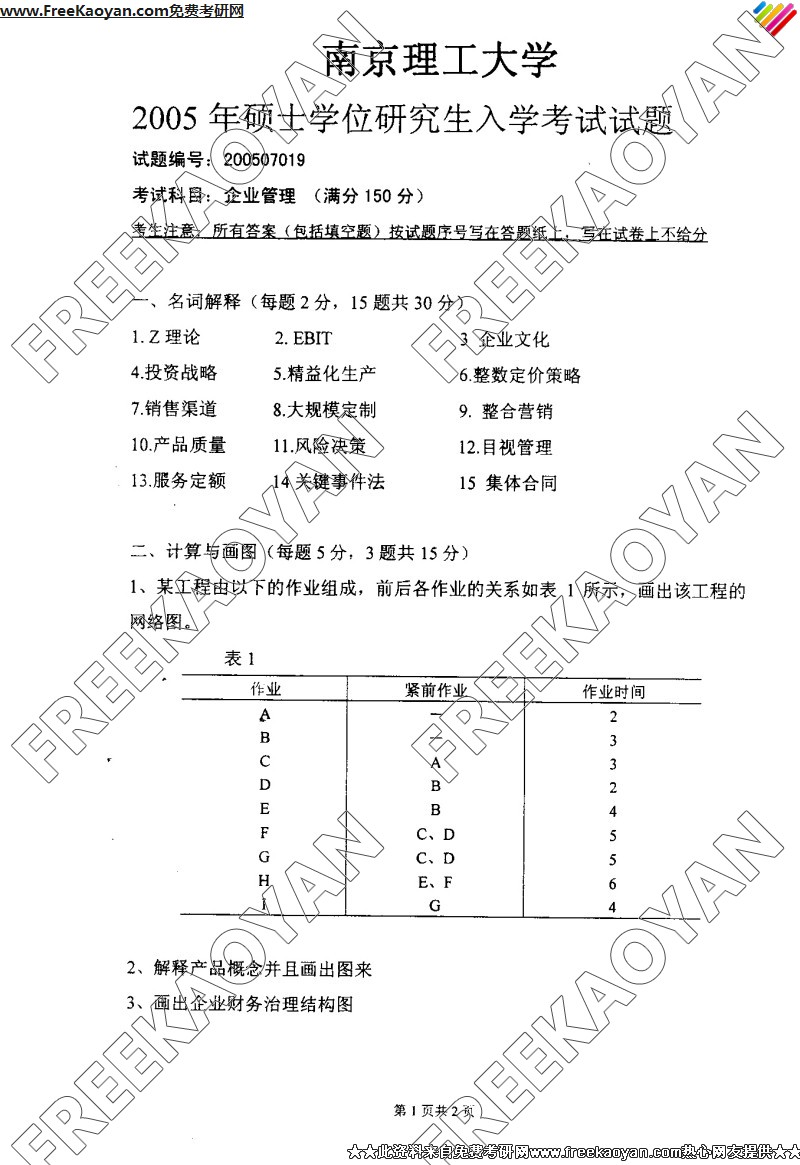 南京理工大学2005年考研真题-企业管理